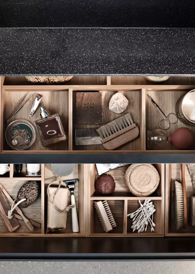 Zusätzliche Einsätze sind eine weitere Möglichkeit, Schubladen im Bad zu unterteilen. Diese Einsätze können aus Holz, Kunststoff oder Metall bestehen und sind einfach zu installieren und zu entfernen, wenn Sie Ihre Organisation ändern müssen. Sie sind auch eine großartige Möglichkeit, große Schubladen in kleinere Fächer zu unterteilen, sodass Sie Ihre Toilettenartikel und andere Gegenstände einfach organisieren können.