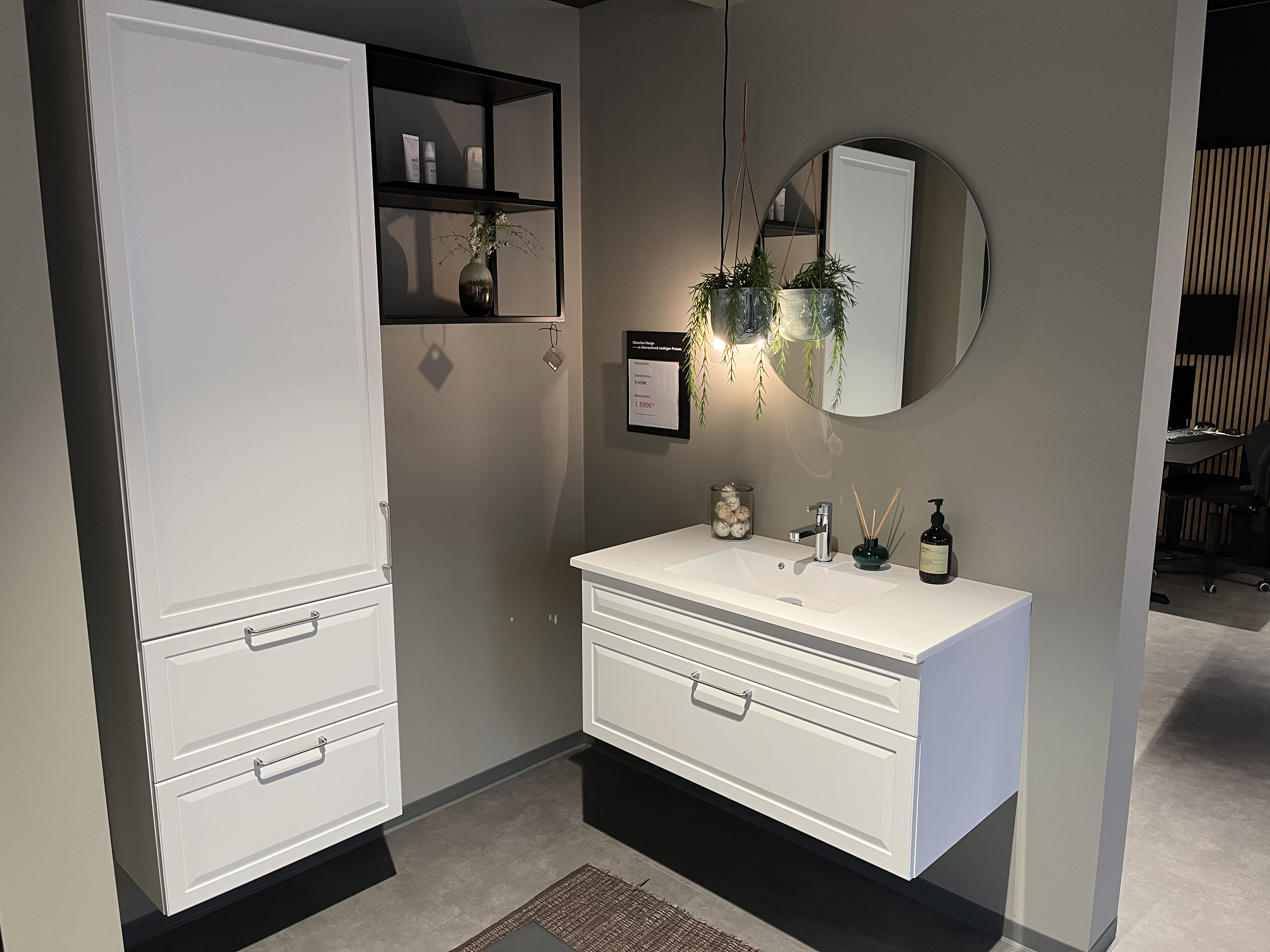 Inklusive: Spiegel, Beleuchtung, Armatur und Spüle