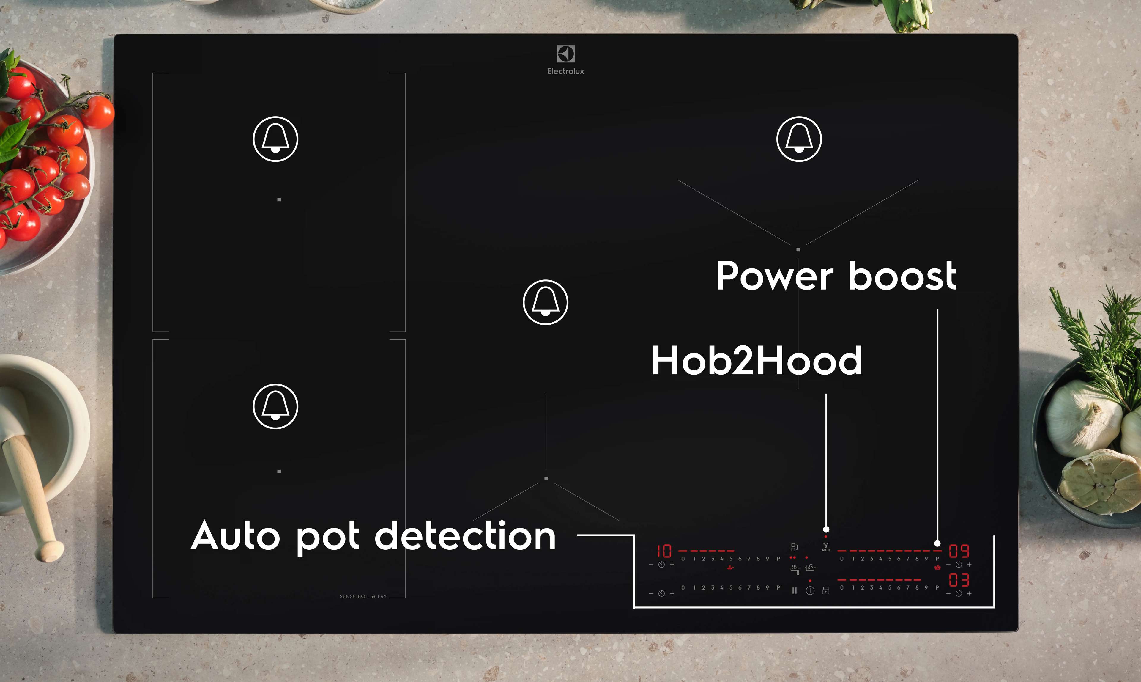 Die individuelle Zonensteuerung bietet Ihnen volle Kontrolle bei der Zubereitung Ihrer Lieblingsgerichte. Navigieren Sie mühelos durch die verschiedenen Einstellungen – vom Aktivieren der Kindersicherung und dem Einstellen von Timern bis hin zur Nutzung der PowerBoost-Funktion für ein schnelles Kocherlebnis.
