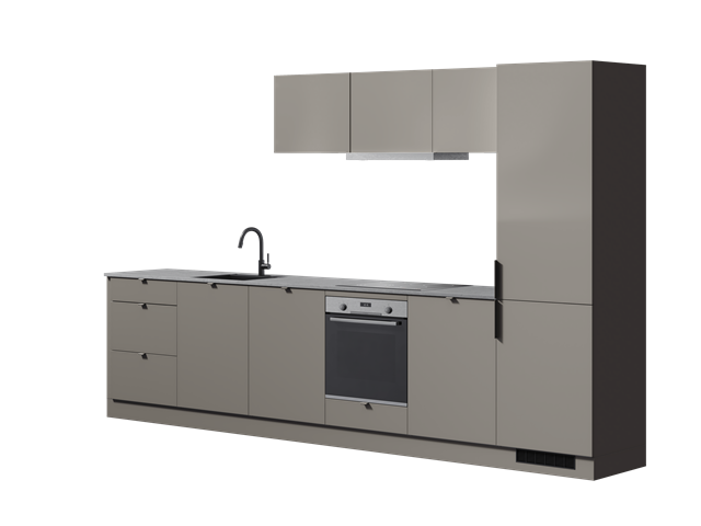 Unser Bordo küchenset besticht durch seine Kombination aus Tonfarbe und dunkler grauer Arbeitsplatte, die sowohl ästhetisch ansprechend als auch funktional ist. Die ultra-matte Oberfläche aus recyceltem PET sorgt dafür, dass Fingerabdrücke und Flecken leicht entfernt werden können, was den täglichen Gebrauch erleichtert. Die Möglichkeit, Griffe individuell zu wählen, erlaubt es Ihnen, Ihre persönliche Note einzubringen und den Stil Ihrer Küche zu unterstreichen.